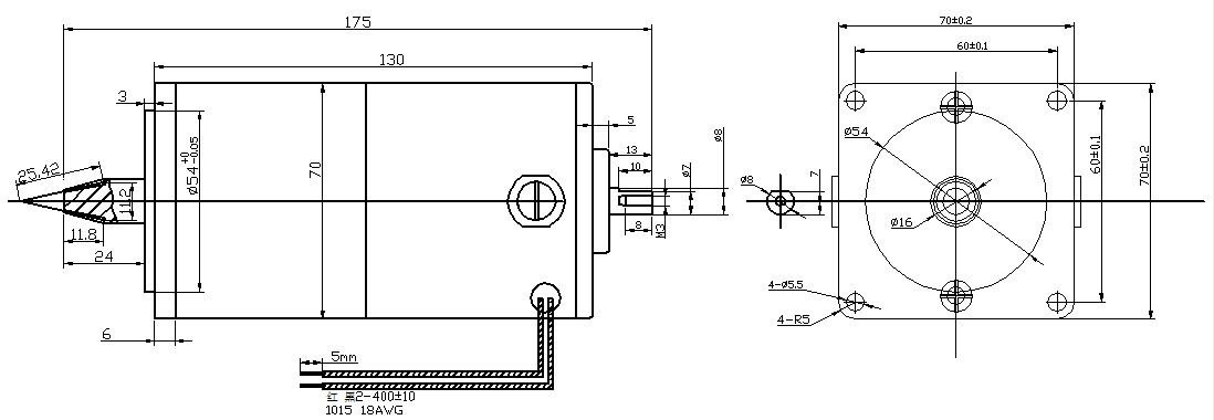 | 型號(hào) | 電壓 (V)DC | 額定電流 (A) | 額定轉(zhuǎn)速 (r/min) | 額定功率 (W) | 額定扭矩 (N.m) | 長度 (mm) |